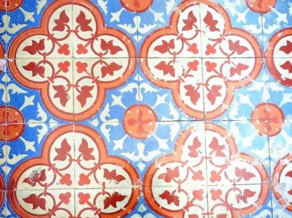 推开闲隙的豪门,古朴大气的走廊里,色调美艳的地砖抢入眼帘,橙红花瓣与蓝白造型交相呼应、线条明快。
